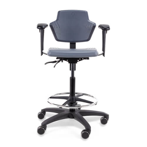 De krachtpatser van Score in het laboratorium. De royale zitting (BxD: 46 x 44 cm) en rug (BxH: 43 x 44 cm) geven je een optimale ondersteuning. Gemaakt van zacht polyurethaan, bestand tegen chemische stoffen en gemakkelijk te reinigen. Het sterke aluminium onderstel is voorzien van grote wielen zodat hij makkelijk verplaatsbaar is.